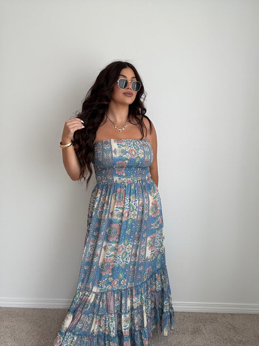 “Tahiti” Boho Strapless Open Back Maxi Dress (ONESIZE)